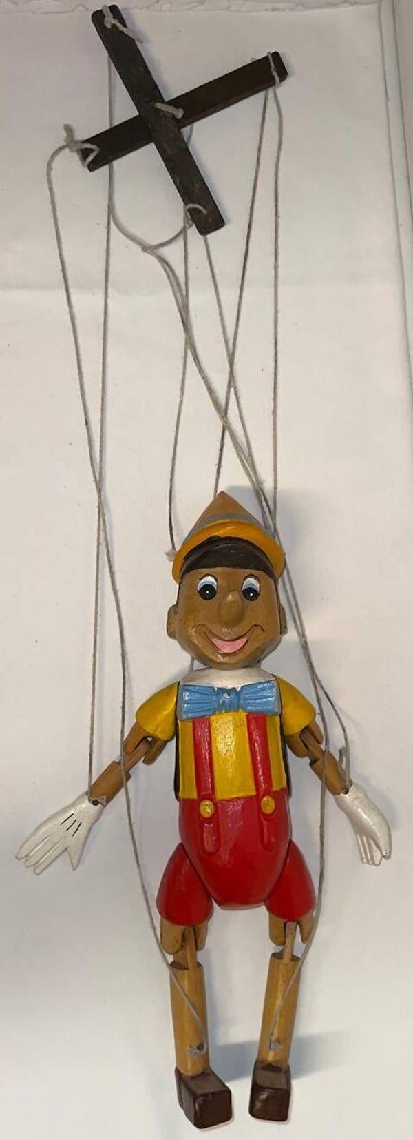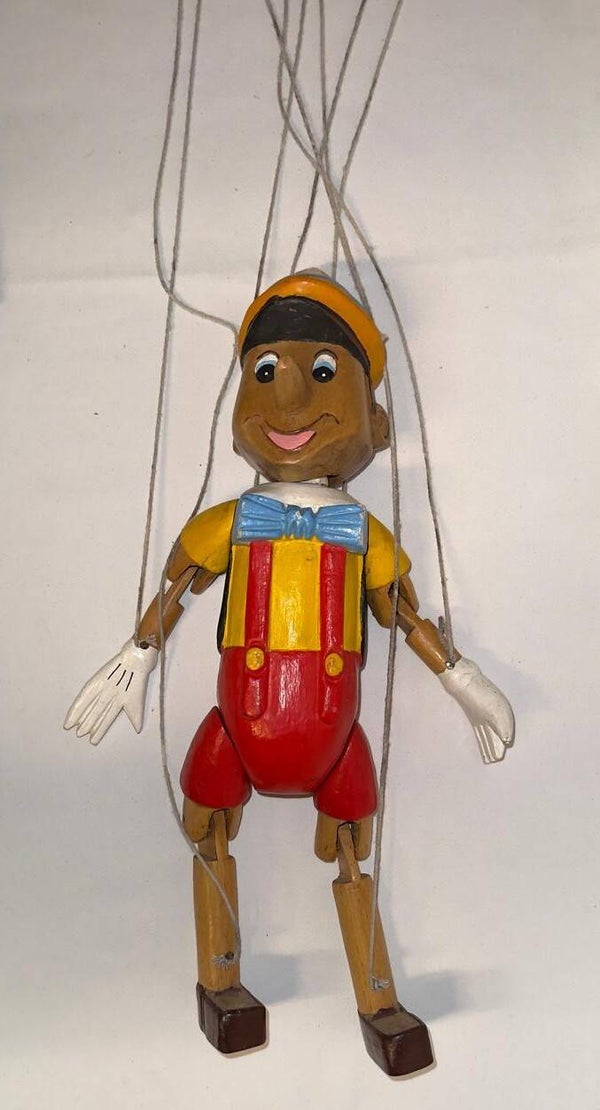 Ooit streng gestraft voor zijn fouten in vroege versies van het verhaal, roept deze Pinocchio nu vooral bewondering op. Als marionet “opgehangen” aan zijn draden krijgt hij juist leven en beweging – een speelse knipoog naar zijn oorsprong.
