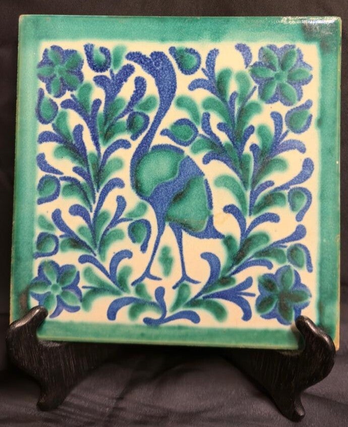 Breng een vleugje mediterrane charme in huis met deze authentieke, handbeschilderde Spaanse wandtegel. Deze keramische tegel (20 x 20 cm, 8 mm dik) toont een elegant ontwerp van een vogel omgeven door florale motieven in diepe groen- en blauwtinten. De tegel is een toonbeeld van vakmanschap, vervaardigd in Spanje, en straalt traditionele esthetiek uit die perfect past in zowel moderne als klassieke interieurs.